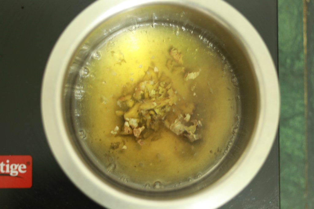 When you are starting the process of mouth-filling, first try it with warm water. Here I have used some ginger flakes and salt for fast relief. You can include different spices like cardamom, clove, bay leaf etc.