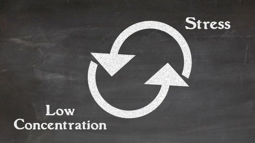 So, basically, the mind affects the body, and the body in turn leads to another effect on the mind. This may become a vicious cycle because low concentration can trigger more stress in a person which in turn will lead to even lower levels of concentration.