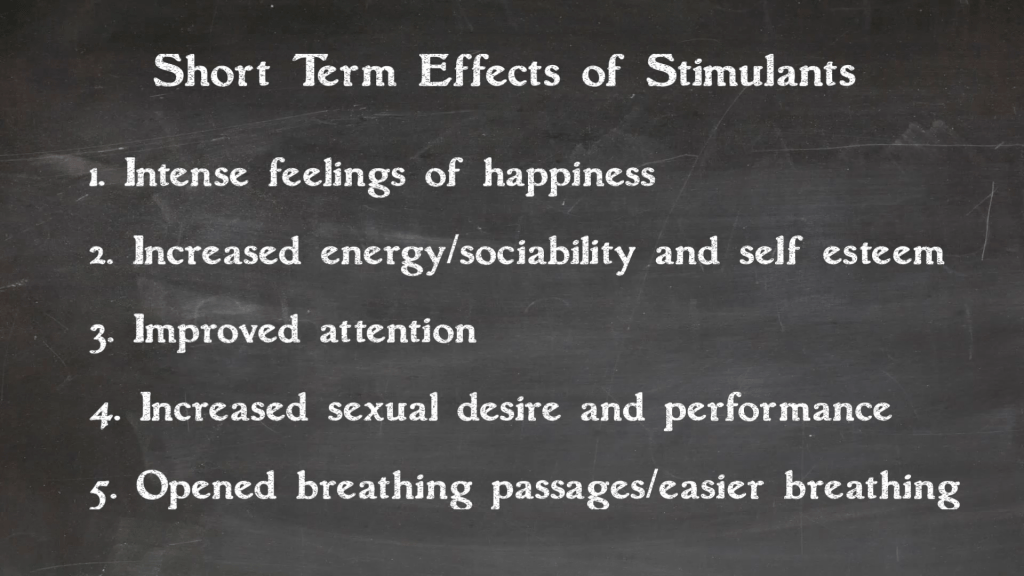 Stimulants are generally abused for their euphoric, energetic effects. In the short term, stimulant effects can be very pleasurable and may include: