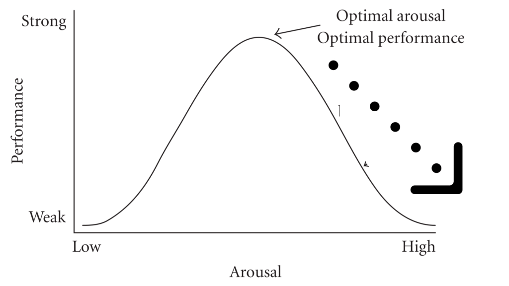 According to the Yerkes–Dodson law, there is an empirical relationship between arousal and performance. This means that the arousal can increase performance up to a level. After a maximum point, increased arousal triggers a slowdown in performance. This happens because, after a point, the body becomes tired.